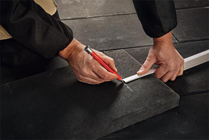 Mechanická tesárska ceruzka v praktickom ochrannom puzdre na rôzne povrchy ako napr na označovanie dreva, kartónu, kameňa alebo betónu.