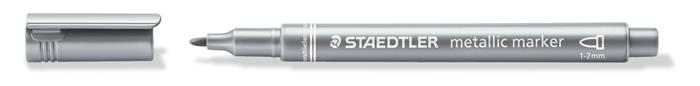 Dekoračný popisovač, 1-2 mm, kužeľový, STAEDTLER, strieborný
