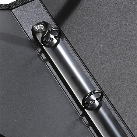 Krúžková doska Viquel - rozmer: 27,5x34,5x3 cm - 4-krúžkový dizajn, priemer krúžka 2,5 cm - nastaviteľný zadný popruh pre pohodlné uchopenie - 2 dvojité vrecká - pútko na pero na boku - držiak na vizitky - fixačný popruh - farba: čierna