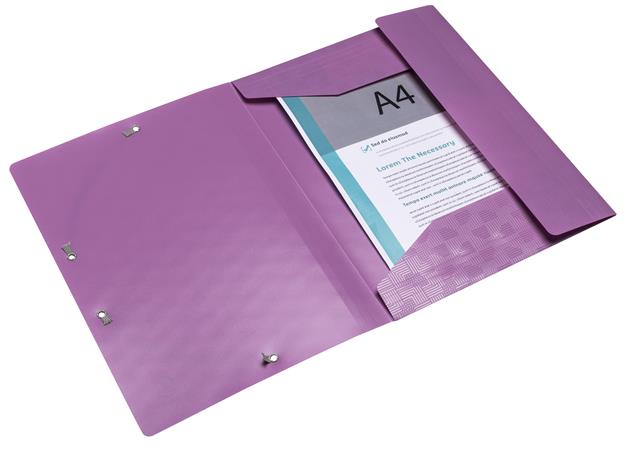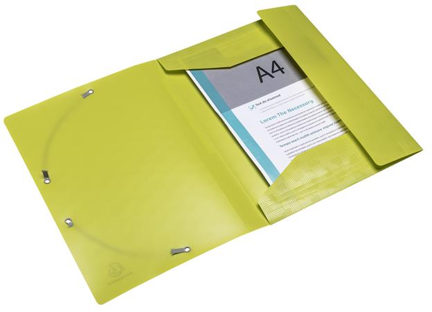Prémiová doska s gumičkou na dlhodobé použitie! -ideálna voľba na používanie v škole, doma alebo v menšej kancelárii-určená na uloženie dokumentov formátu A4 -0,5 mm PP PP materiál -uzatváranie pomocou gumičky umiestnenej v rohoch -3 vnútorné chlopne pre bezpečné uloženie dokumentov -kapacita: približne 250 listov (80 g/m2) -chrbtový štítok pre jednoduchú identifikáciu obsahu -mix farieb, farba sa nedá vybrať (cyánová, fialová, lime, mango) -vyrobená z materiálu s certifikátom Blu Angel