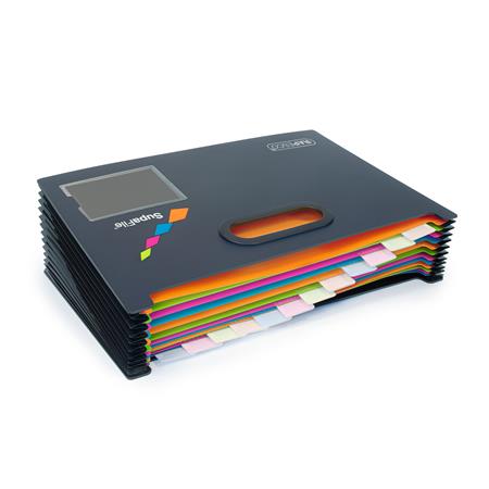 Harmonikový box na dokumenty, A4, PP, 13 priehradiek, antibakteriálny, RAPESCO "SupaFile", čierny