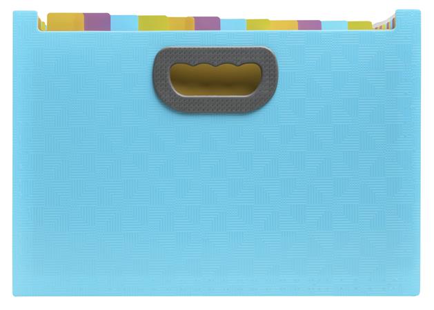 na uchovávanie dokumentov formátu A4 - kapacita: 800 listov (80 g/m2) -materiál: PP s certifikátom Blue Angel - pružný, odolný, z polypropylénového materiálu -vyhotovenie s registrom, s možnosťou popisu na štítkoch - 24 priehradiek - reliefovaný povrch, vo vnútri priehradky rôznych farieb - rozmery: 330 x 235 x 250 mm -s úchytmi na oboch stranách