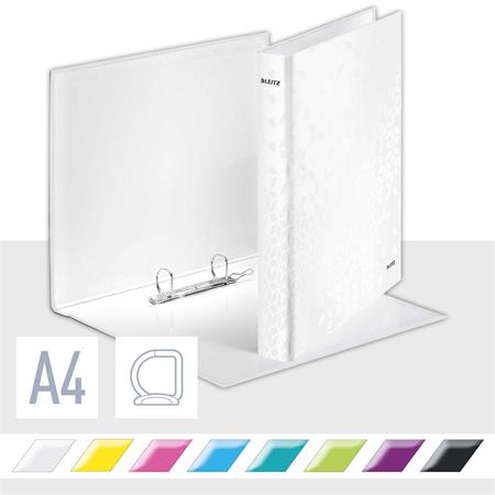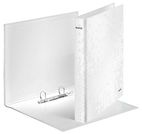 Krúžkový šanón, 2 D-krúžky, 40 mm, A4 Maxi, kartón, LEITZ "Wow", biela