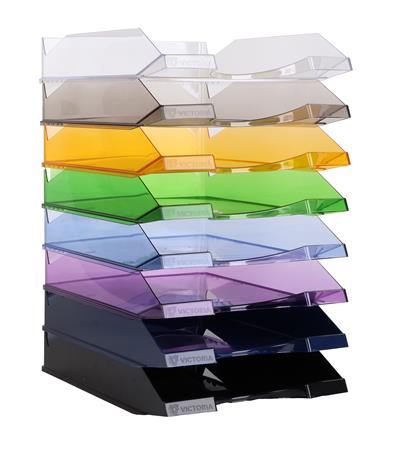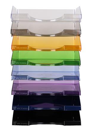 Odkladač, plastový, VICTORIA OFFICE, priehľadný modrý
