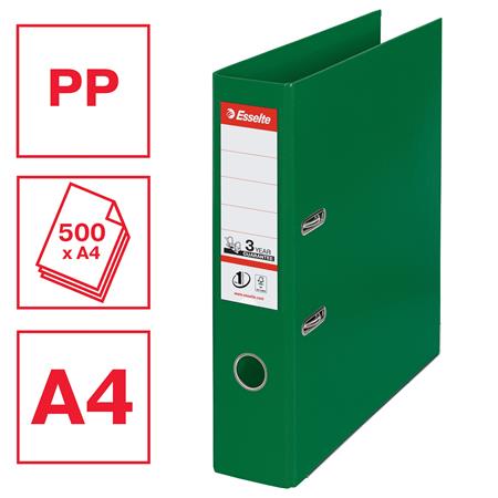 Pákový šanón, 75 mm, A4, PP/PP, s ochranným spodným kovaním, ESSELTE "Standard", zelený