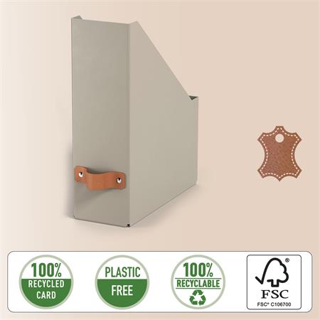 Súprava dvoch stojanov na časopisy zo 100% recyklovaného kartónu s certifikátom FSC s moderným a čistým dizajnom, ktorý doplní vašu domácnosť aj kanceláriu.