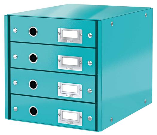 Zásuvkový box, polaminovaný kartón, 4 zásuvky, LEITZ "Click&Store", ľadovo modrá