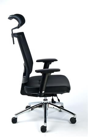 Exkluzívna kancelárska stolička s opierkou hlavy, čierna koža, sieťové operadlo,hliníkový podstavec, MAYAH "Maxy"