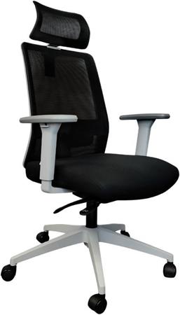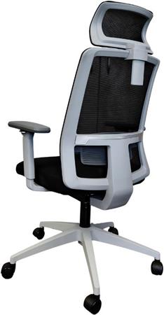 Kancelárska otočná stolička, čierna sieťovaná opierka chrbta, látkový sedák, šedý plastový rám a kríž na nohách, „Delfo“