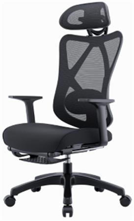 -sieťovina, vysoké operadlo -opierka hlavy s nastaviteľnou výškou a uhlom sklonu -bedrová opierka s nastaviteľnou výškou a hĺbkou -čierny čalúnený sedák -s opierkou nôh -1D lakťová opierka, mäkká oporná plocha -automatický synchrónny mechanizmus (antishock) -plastový kríž na nohy d.700 -d.50 kolieska -nosnosť: 110 kg - denná doba používania: 5-7 hodín - celková výška: 115-129 cm - výška sedadla: 38-52 cm - celková šírka: 70 cm - šírka sedadla: 47 cm - sedadlo hĺbka: 47 cm