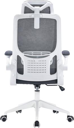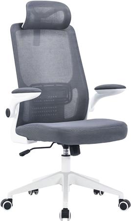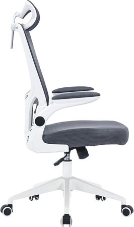 Kancelárska otočná stolička, šedá sieťovaná opierka, šedé látkové čalúnenie, biely plastový rám a kríž, "Mulberry"
