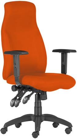 Manažérska stolička, čalúnená, čierny podstavec, vysoká chrbtová opierka, "HUFO", oranžová