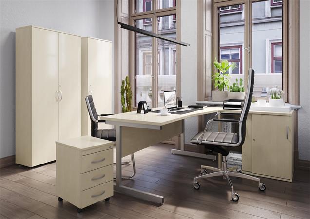 Písací stôl, zakrivený, ľavý, so sivými kovovými nohami, 160x80cm, MAYAH "Freedom SV-30", javor