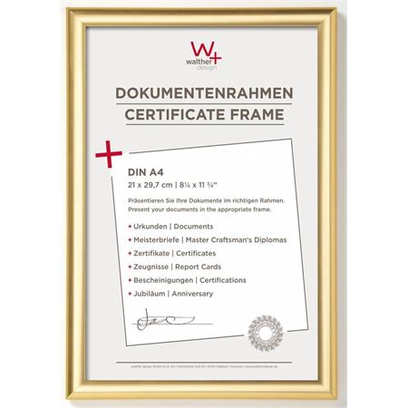 Obrazový rám, plastový, 21x29,7 cm, A4, "Walther Trendstyle", zlatá