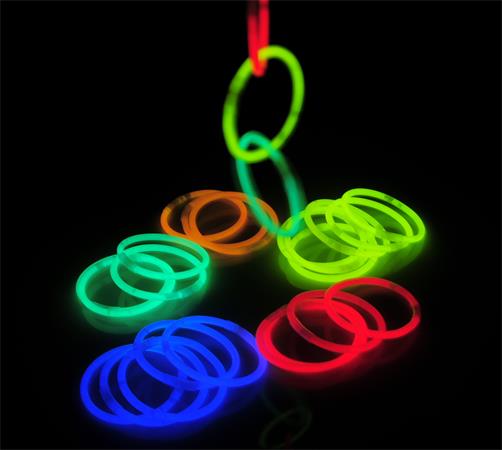 Náramok, svietiaci v tme, plastový, 15 ks, rôzne farby