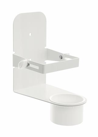 Držiak na dezinfekčné prostriedky s objemom od 0,5 l do 1l, pre pripevnenie na stenu, s odkvapkávacou miskou, s nastaviteľnou hĺbkou pre rôzne typy a tvary dezinfekcií