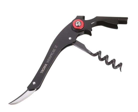 Otvárač vína – sada, nôž, vákuová zátka, TROIKA, čierna-červená