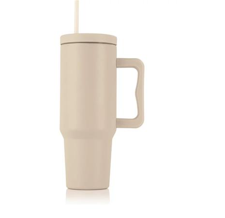 Termohrnček, 1,2 l, so slamkou, s uškom, béžový