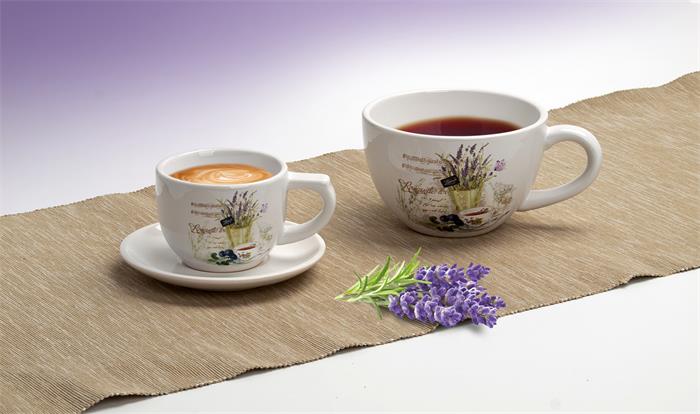 Hlavná stránkaPrevádzka a údržbaKuchynské výrobkyPorcelánové kuchynské výrobkyKávová šálka s levanduľovým vzorom + podšálka, 250 ml