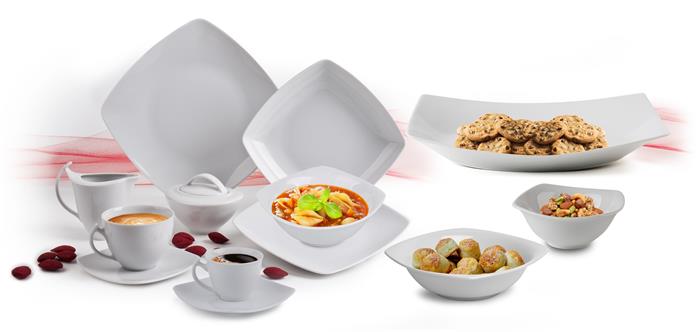 Plytký tanier, porcelán, hranatý, 25 cm, ROTBERG, "Quadrate", biely