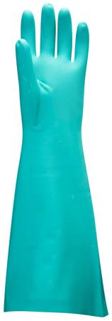 Ochranné rukavice, nitrilové, chemicky odolné, dlhý rukáv, L, zelená