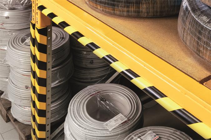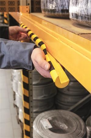 Samolepiaci flexibilný rohový ochranný profil z polyuretánovej peny - pre vnútorné použitie - poskytuje ideálne riešenie vo výrobných priestoroch, dopravných oddeleniach a skladoch, pivniciach, schodiskách, garážach, stenách, trámoch, regáloch a skriniach, ako aj strojoch, skladoch vozíky atď. -označuje nebezpečné miesta, chráni povrchy, steny a zmierňuje poškodenia spôsobené nárazom -profily je možné skrátiť na požadovanú dĺžku ostrým nožom -na výrobku používame farby podľa ASR A1.3, ktoré zodpovedajú RAL 1004/9003 farby (označovač žltý/ popisovač čierny) - trieda E požiarna odolnosť podľa normy DIN EN 13501-1 - tepelná odolnosť od -30°C do + 70°C - dĺžka profilu 1 m - lepiaca plocha: 25 mm na oboch stranách