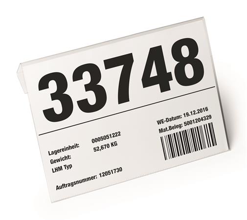 -priehľadné puzdro na dokumenty z tvrdenej PET fólie s ohybom, vhodné na zavesenie nad kartónové škatule, boxy alebo iné skladovacie nádoby