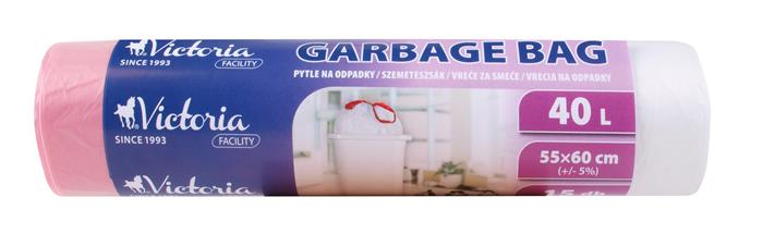 Vrecia na odpadky, zaťahovacie, 40 l, 15 ks, VICTORIA FACILITY