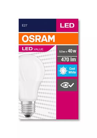 Hlavná stránkaPrevádzka a údržbaPrevádzka a údržbaŽiarovkyLED žiarovka, E27, guľa, A60, 5W, 470lm, 4000K (HF), OSRAM "Value"