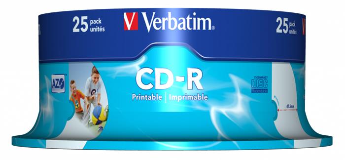 CD-R disk, potlačiteľný, matný, ID, AZO, 700MB, 52x, 25 ks, cake box, VERBATIM