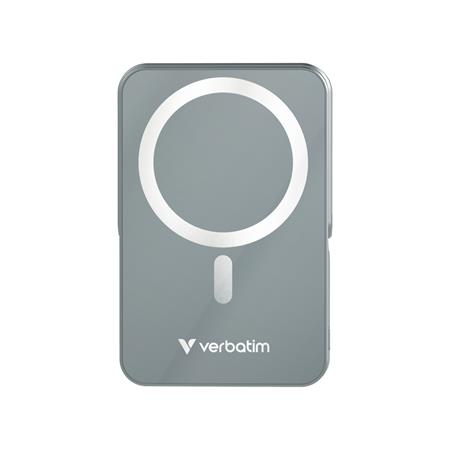 Power banka, externá batéria, magnetická (bezdrôtová), 10 000 mAh, stojanček, VERBATIM "Charge n Go", sivá