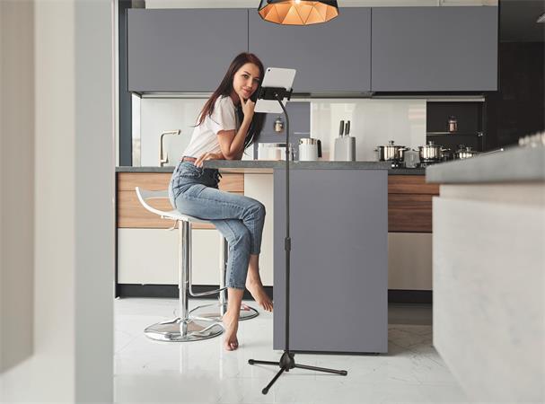 Podlahový stojan s držiakom na tablet a mobilný telefón, s flexibilným ramenom a guľovým kĺbom pre tablety a smartfóny do 13".