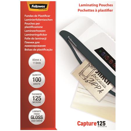 Laminovacia fólia, 125 mikr., 83x113 mm, lesklá, 100 ks, FELLOWES