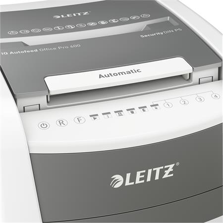 Skartovací stroj, mikrokonfety, 600 listov, LEITZ "IQ AutoFeed Office 600 P5"