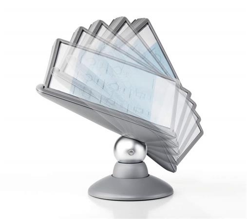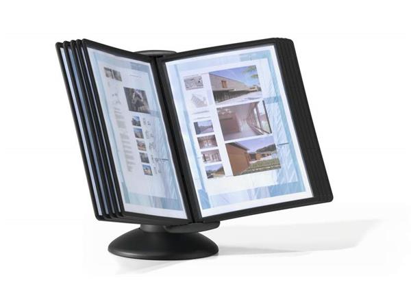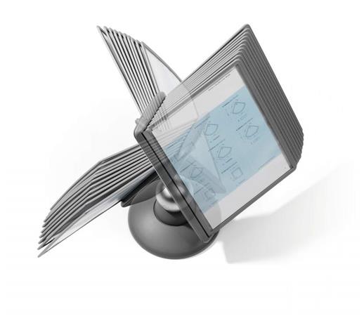 Hlavná stránkaTechnologické výrobkyPrezentáciaStolové a nástenné prezentačné tabuleDržiak na prezentačné tabule, stolový, pre 10 ks prezentačných tabuľ, DURABLE, "Motion", čierna