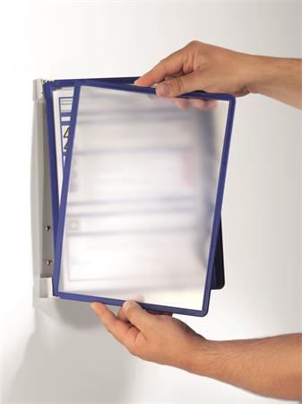 - extrémne pevný držiak na stenu vyrobený z kovovej platne s 10 displejovými polypropylénovými panelmi Sherpa s indexami