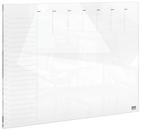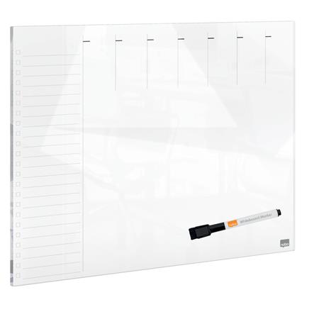 Plánovacia tabuľa, sklenená, magnetický povrch, týždenná, 43x56 cm, NOBO "Home", biela