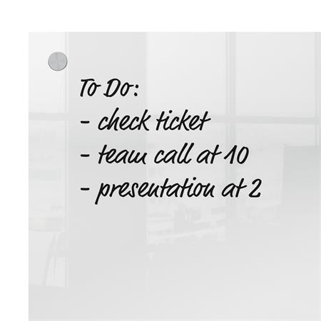 Mini tabuľa s moderným, bezrámovým dizajnom, pre domáce a kancelárske použitie, na písanie poznámok, zapisovanie myšlienok, nápadov alebo dôležitých dátumov. Cez rohy sa dá namontovať na stenu a vďaka priehľadnému dizajnu nepozorovane zapadne do okolia, keď sa nepoužíva. Ľahko čistiteľný povrch; stačí naň napísať a zmazať. - dá sa nasucho stierať - príslušenstvo: 1 popisovač na tabule - rozmer: 600x450 mm - možno inštalovať vertikálne alebo horizontálne - záruka 1 rok na povrch